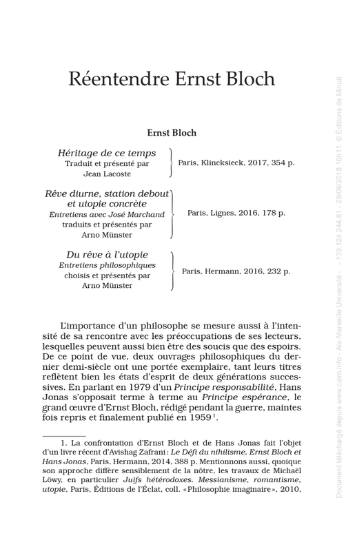 En quoi la philosophie d'Ernst Bloch a une valeur actuelle.
