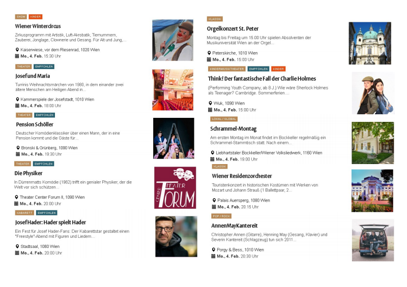 Alle aktuellen Veranstaltungen in ganz Österreich, zusammengestellt von der falter.at-Programmredaktion mit Tipps und Empfehlungen der Wiener Wochenzeitung FALTER.